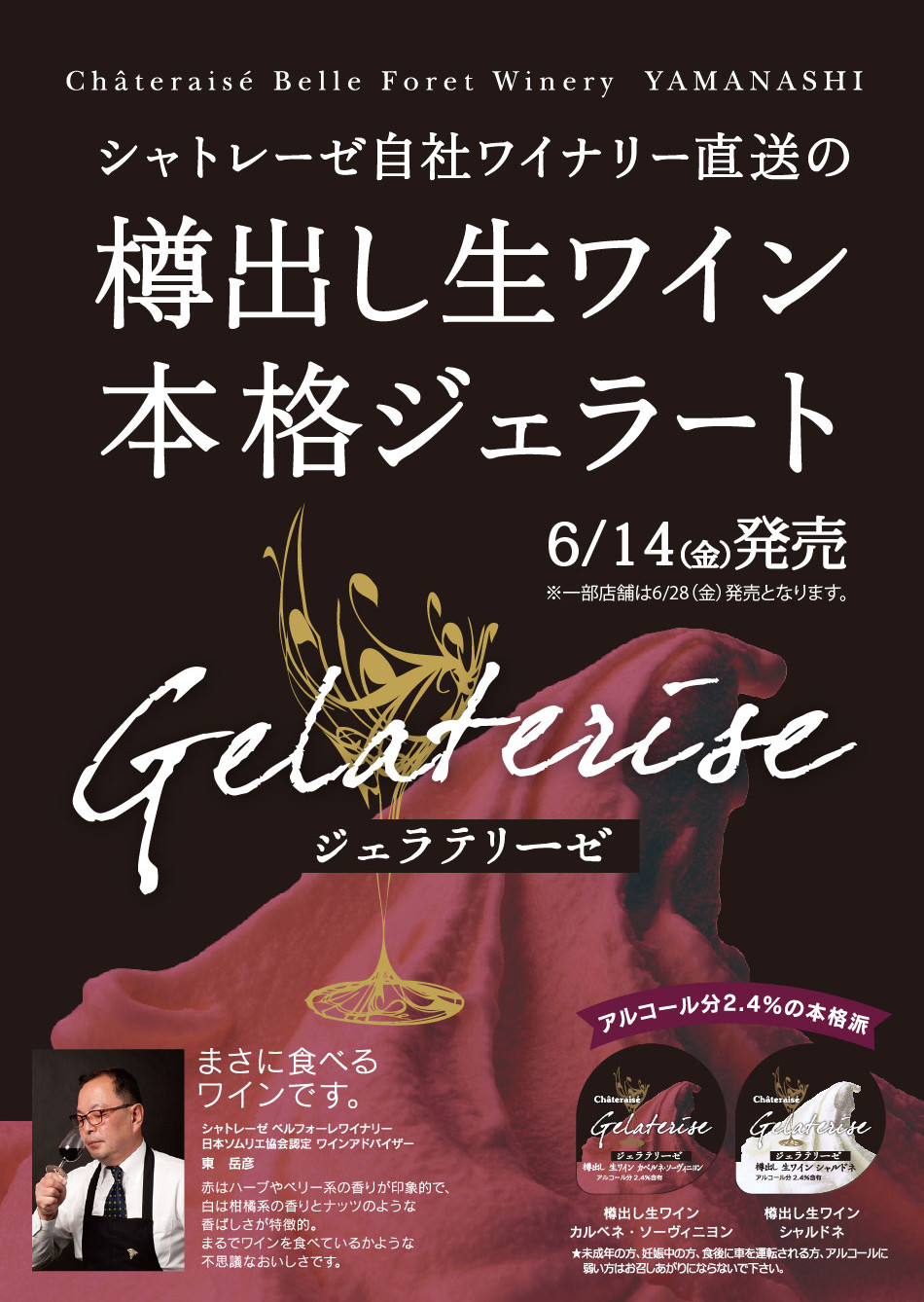 洋菓子店「Chateraise(シャトレーゼ)」は、アルコール分2.4%の本格派ジェラート「Gelaterise(ジェラテリーゼ)」を6月14日に発売するそうです。